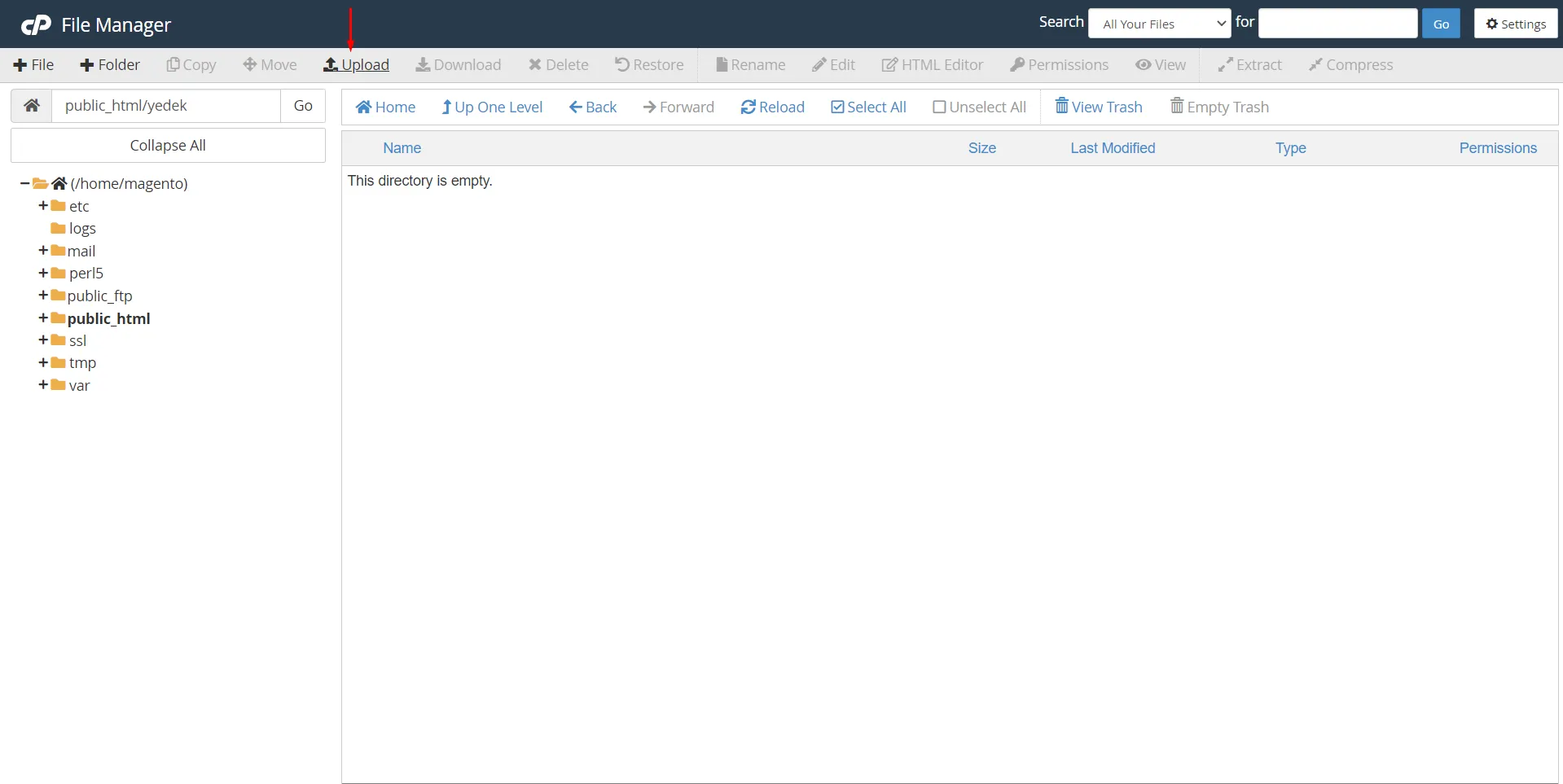 - Yedek dosyasının içine girip Upload'a tıklayınız.