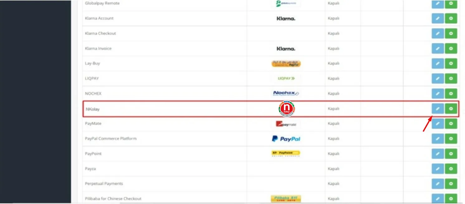 - NKolay Payment Gateway kısmından Eklentiyi yüklemek için yanında bulunan + butonuna tıklayınız.