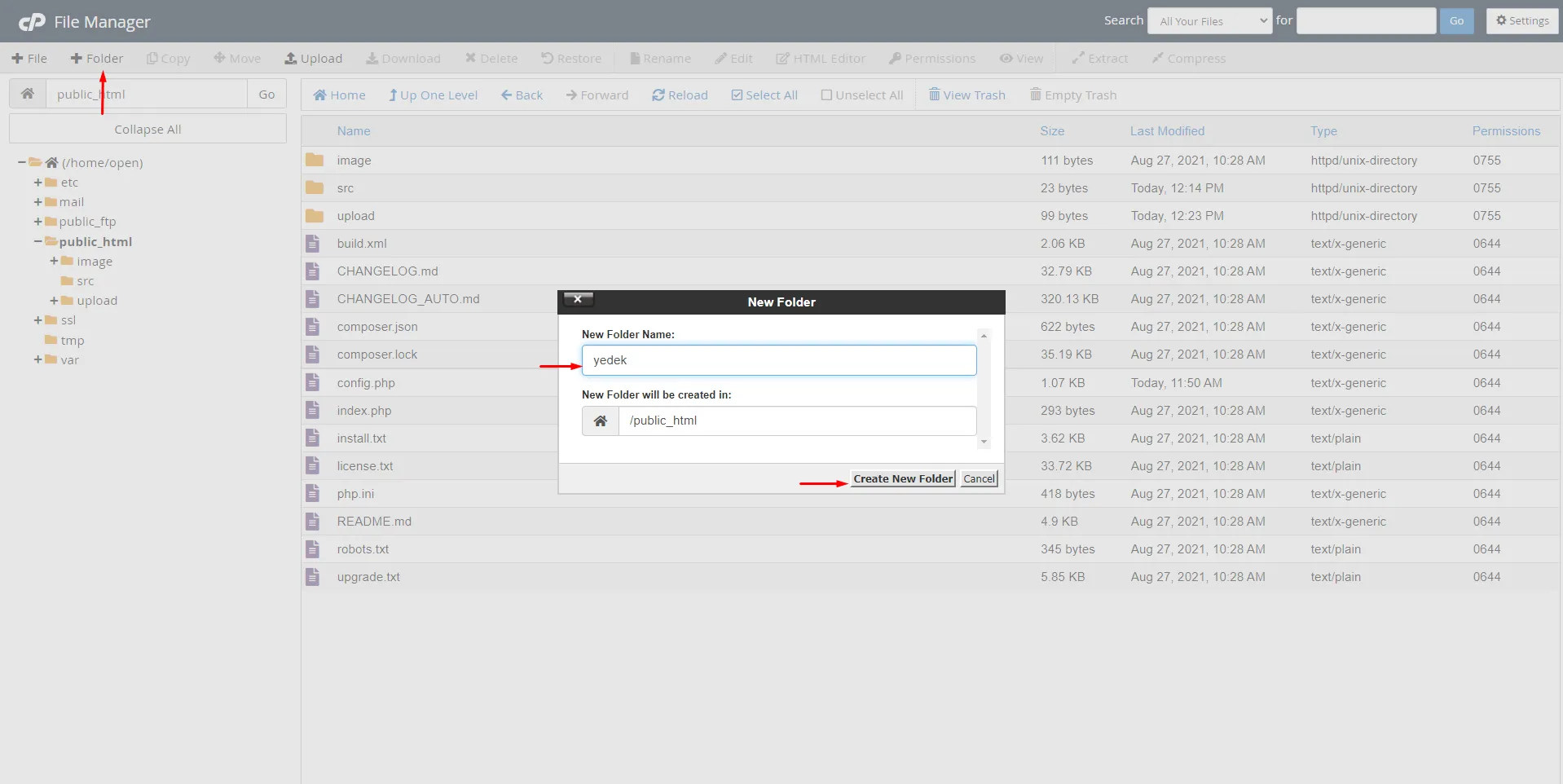 - Açılan sayfada public_html klasörünün içine giriniz.