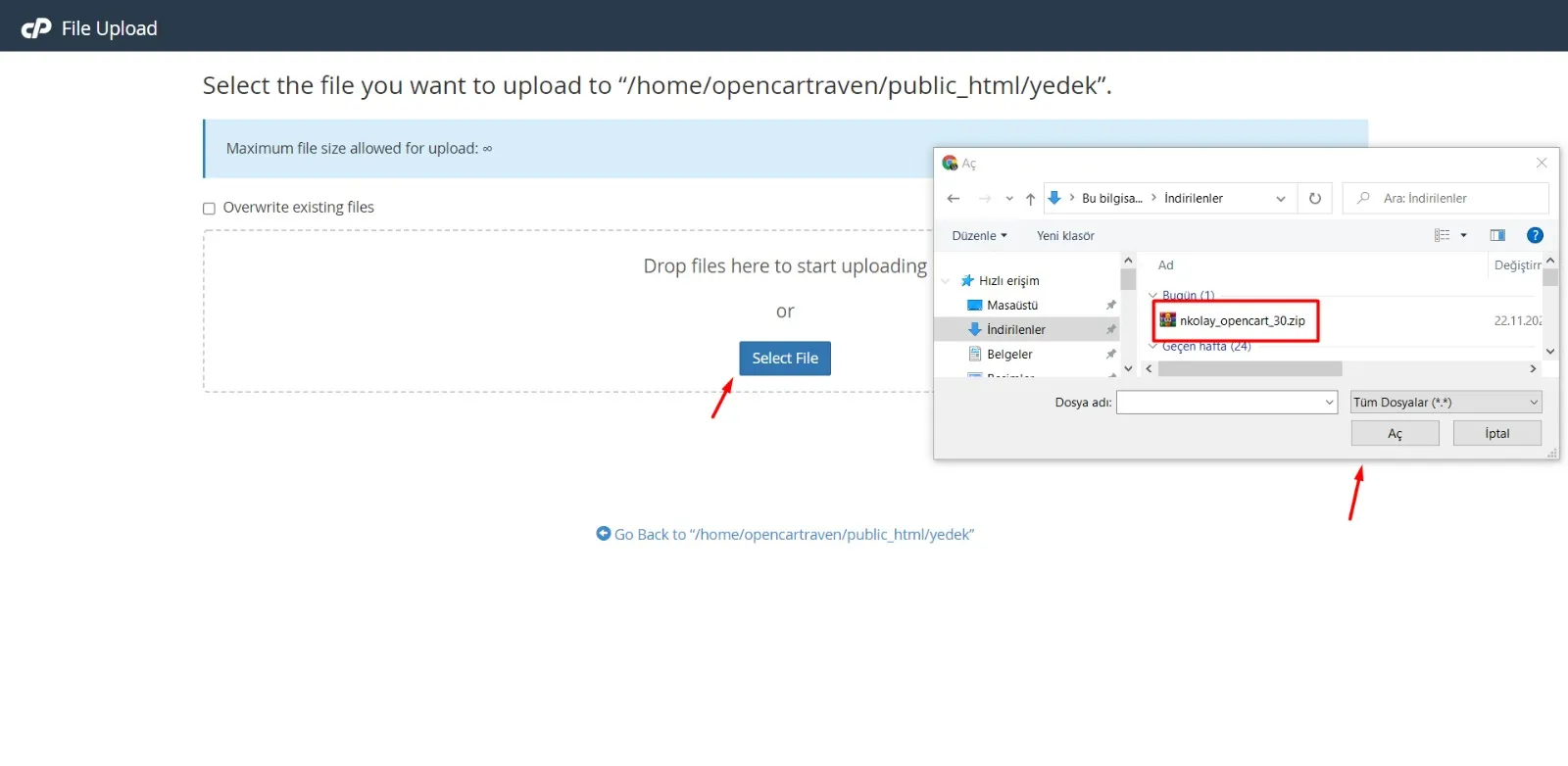 - Açılan sayfada Select File'a tıklayıp modülü seçerek yüklemeyi tamamlayınız.