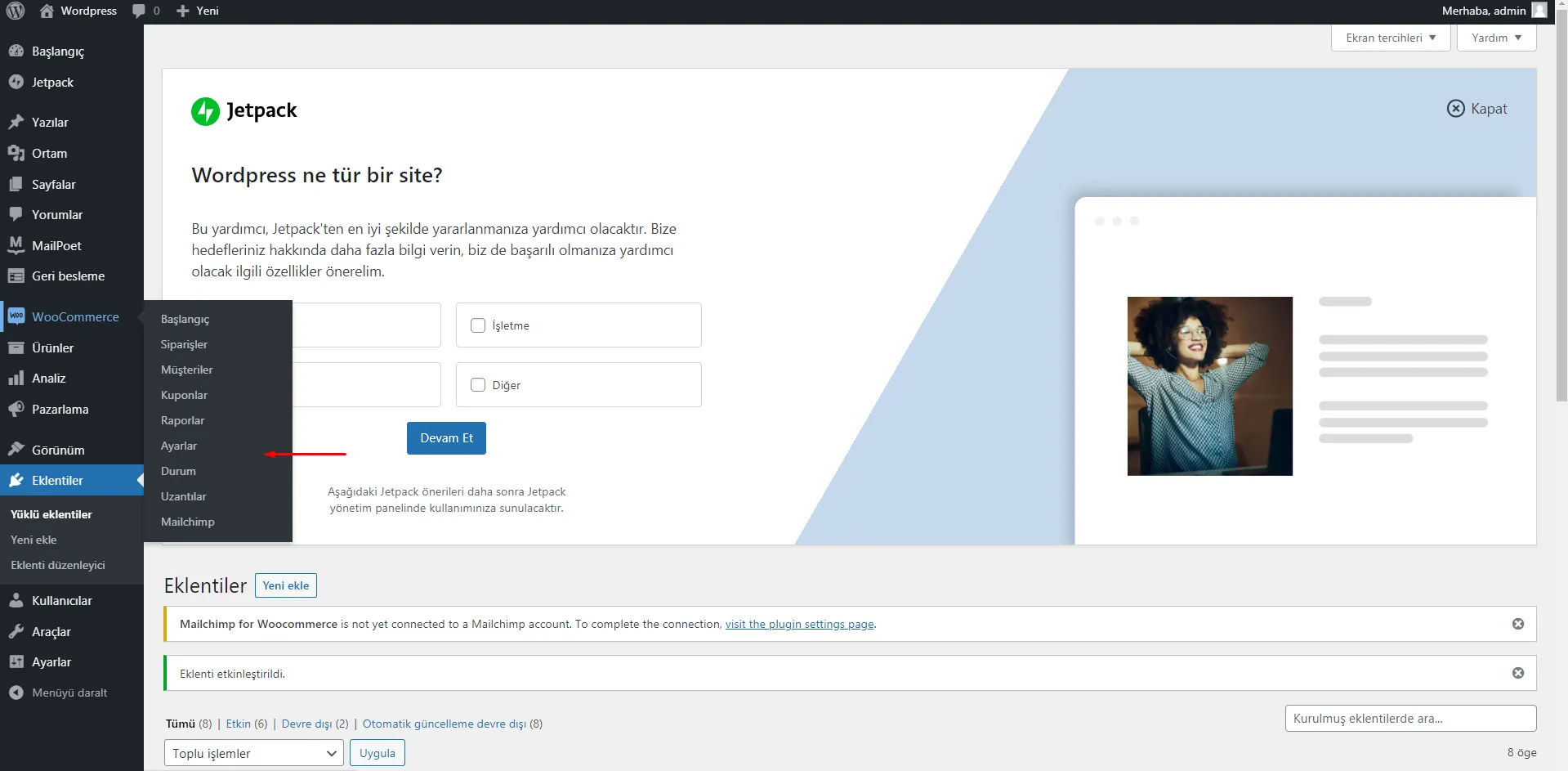 - Ödeme Bilgilerinizi girmek için WooCommerce > Ayarlar bölümüne tıklayınız.